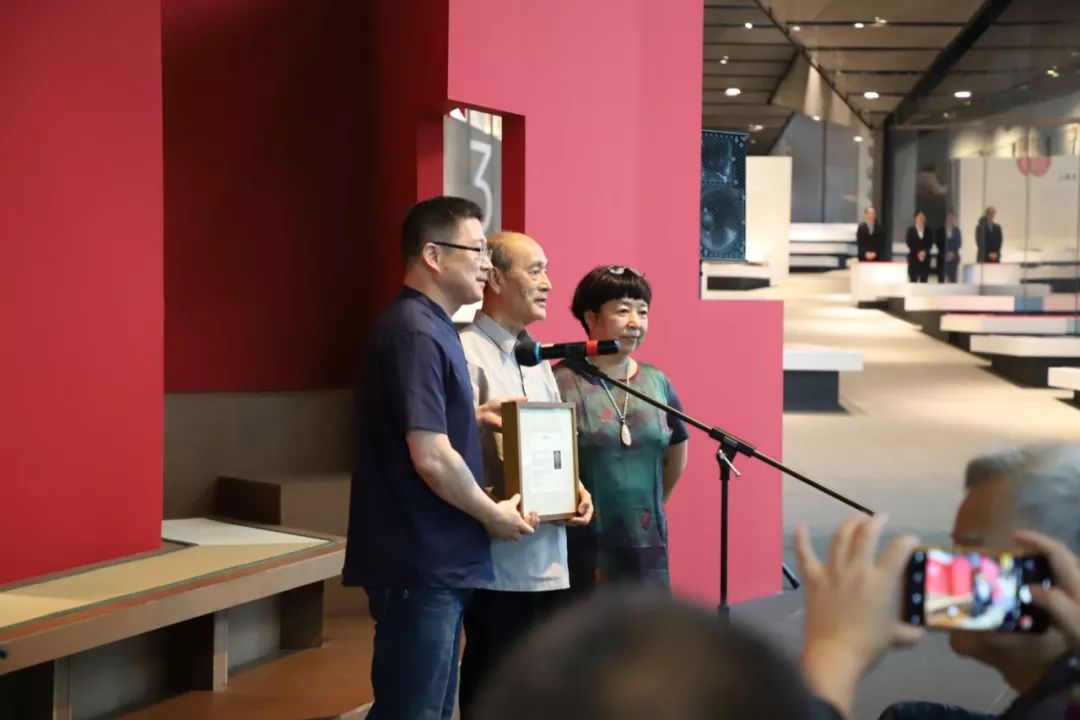 中国美术学院副院长兼美术博物馆总馆长杭间教授为捐赠人张树贤先生颁发捐赠证书