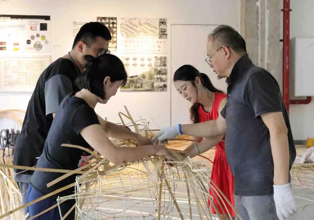 四川美术学院手工艺术学院谢亚平院长、郑川书记及手工艺术学院各位老师,建筑系余晖书记及建筑系各位老师参观我们在该校工作坊教学成果展及留影