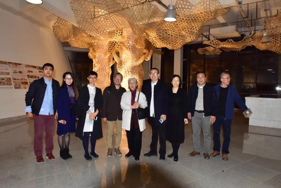 原中央工艺美术学院院长常沙娜、山东工艺美术学院院长潘鲁生、副院长李新、现代手工艺术学院院长赵进、美术馆馆长及建筑学院副院长李文华、覃大立教授及现代手工艺术学院老师们参观《编织陈设》课程教学成果展览后合影留念
