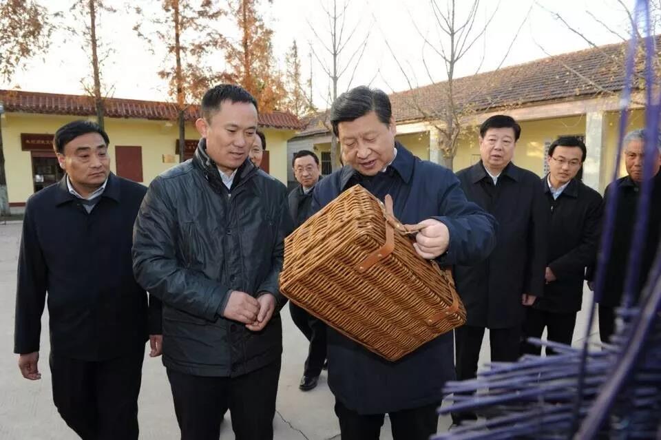 习近平主席视察广州美术学院在山东的校外编织教学实践基地——临沂荣华文创藤饰股份有限公司。覃大立教授的学生张志全总经理已成为全国篮筐编织行业的创新典范,受到了习近平主席的接见