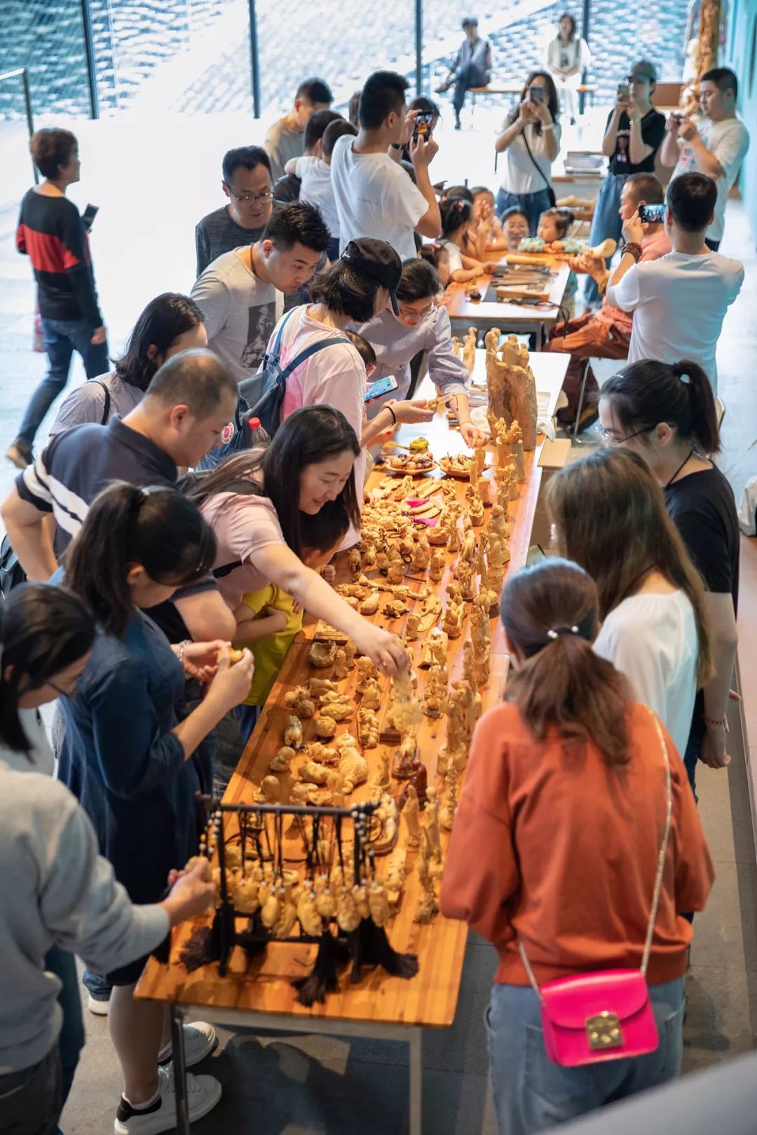 当天上午,在国家级非物质文化遗产之一的“黄杨木雕”非遗活态演示中,工艺美术师王晓秋、陈宗立现场示范黄杨木雕的制作过程。他们边示范,边讲述黄杨木雕所需要的材料特性,还讲了工艺流程和制作工序。制作工序一般分为塑制泥稿、选择材料、凿打粗胚、镂雕实胚、细部修理、擦砂磨光、细刻和上光等十多道工序,而且每道工序都需要艺人们付出极大的智慧和精心的劳作,要做到全神贯注,一丝不苟。参观者积极参与到活动中,与手工艺人积极交流,表现出对于黄杨木雕的极大兴趣。