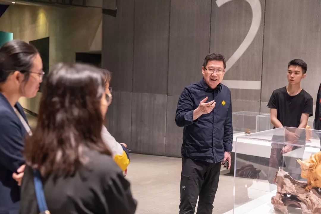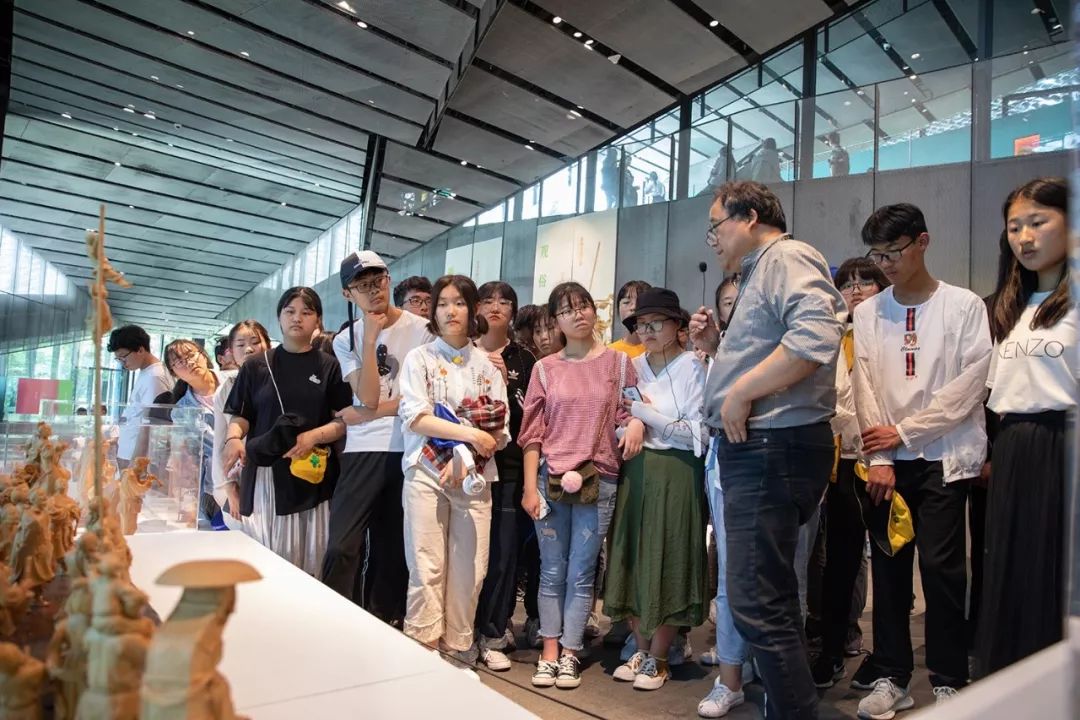 当天上午,中国美术学院民艺博物馆执行馆长吴光荣教授对青少年进行了专场导览,吴光荣教授带领青少年参观了《黄杨木雕之春——浙江民艺深耕系列之一》展览,依次参观了“福雕黄杨”、“观俗塑礼”、“雕写百态”、“纳天为雕”和“寄雕未来”五个展览板块。以生动诙谐的语言结合生活趣味讲解着黄杨木雕的作品及背后的历史文化,以及黄杨木雕与人们生活的关系,希望大家关注民艺生气勃勃的日常生活价值创造,理解背后深层的传统文化内涵。吴光荣教授提出了自己对青年学生的期望,希望他们在未来不仅关注良好的专业技能,还需要不断提升自己的艺术文化修养,使听者受益匪浅。