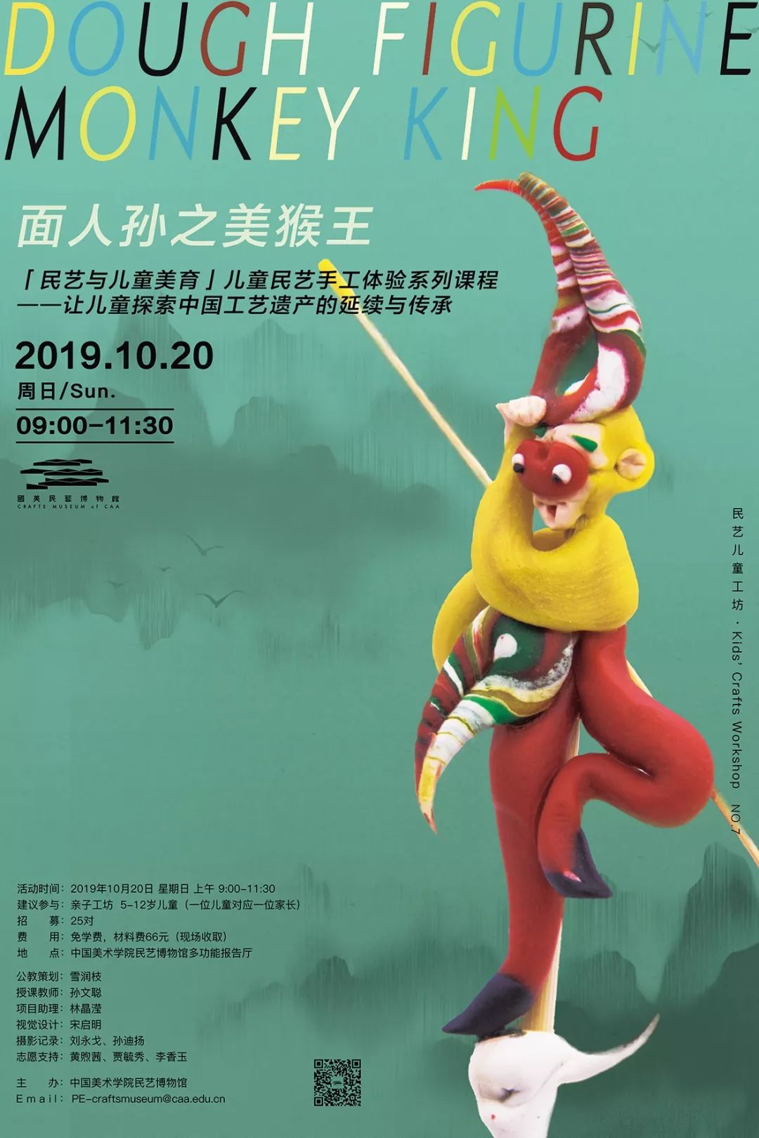 本课程邀请了浙江慈溪面人孙工作室的孙文聪老师过来授课。慈溪面人孙工作室是宁波市非物质文化遗产传承基地,致力于青少儿传统手工艺的传承工作。本课程内容分为两部分,第一部分为讲座,老师将讲解慈溪面人的历史文化背景、风格特点及制作手法等。第二部分为现场体验,老师将带领大家进行美猴王面塑制作。