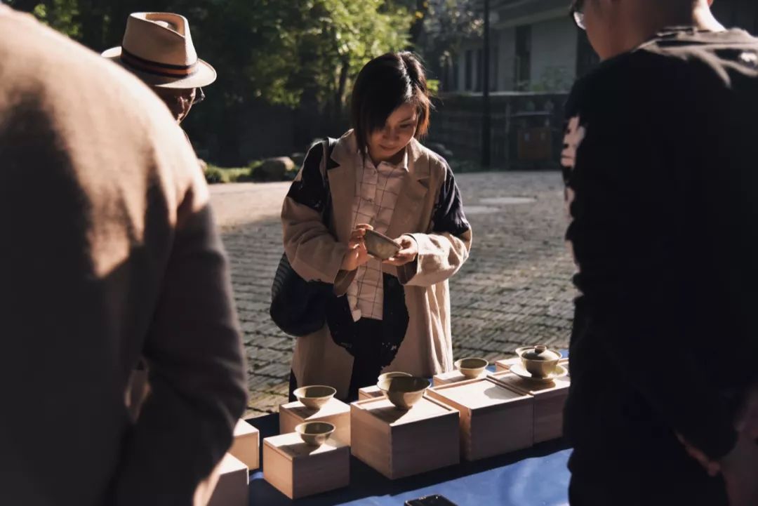 现场来了很多慕名而来的手工艺爱好者,也有国际友人过来观摩、咨询。有摊位还放上了茶桌,泡起了茶,有着闲适轻松的氛围。在这里不仅能淘到个性化的,适合于生活的新工艺器物,还可以有机会与手工艺术家面对面交流,探讨手工艺术的技艺心得。新工艺市集在民艺博物馆绿荫青砖平台上进行,现场清风习习,暖阳融融,是市民周末休闲的好去处。