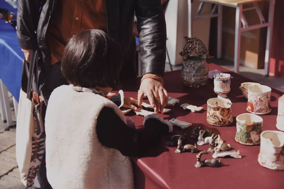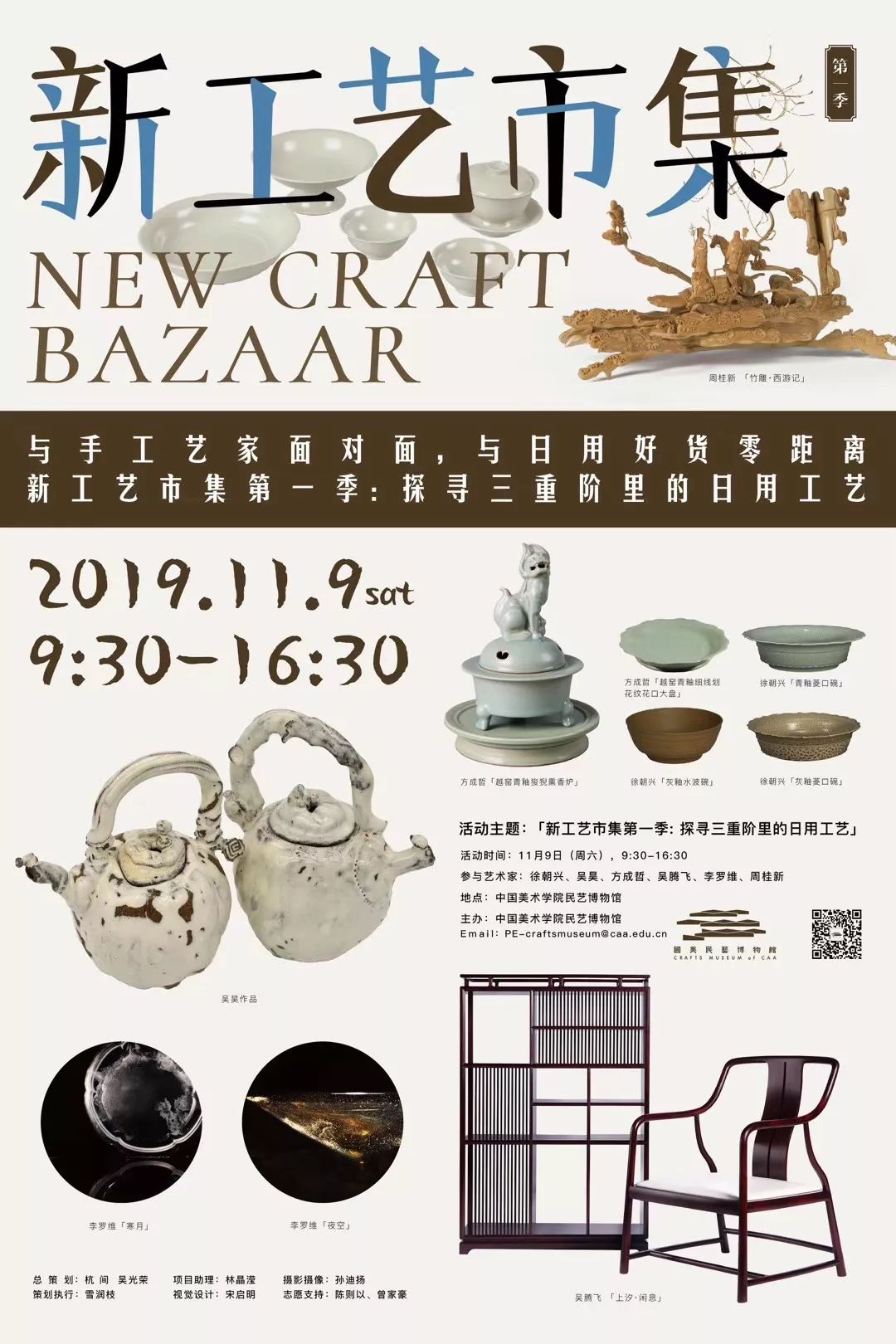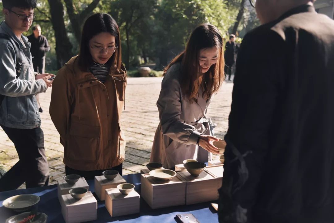 为了给大家提供一个与本期展览《三重阶——当代手工艺学术提名展》的艺术家面对面交流,买到艺术家作品的机会,11月9日中国美术学院民艺博物馆举办了“探寻三重阶里的日用工艺”新工艺市集。本季市集参与的艺术家有:徐朝兴,吴昊,方成哲,吴腾飞,李罗维,周桂新。市集上展售了艺术家的代表作品以及其工作室出品的艺术品。在本季市集上售卖的有:龙泉青瓷器物、越窑青瓷器物、红木文房用品、红木小件家具、陶器、玻璃器、精细竹雕艺术品等适合用于日常生活的手工艺术品。