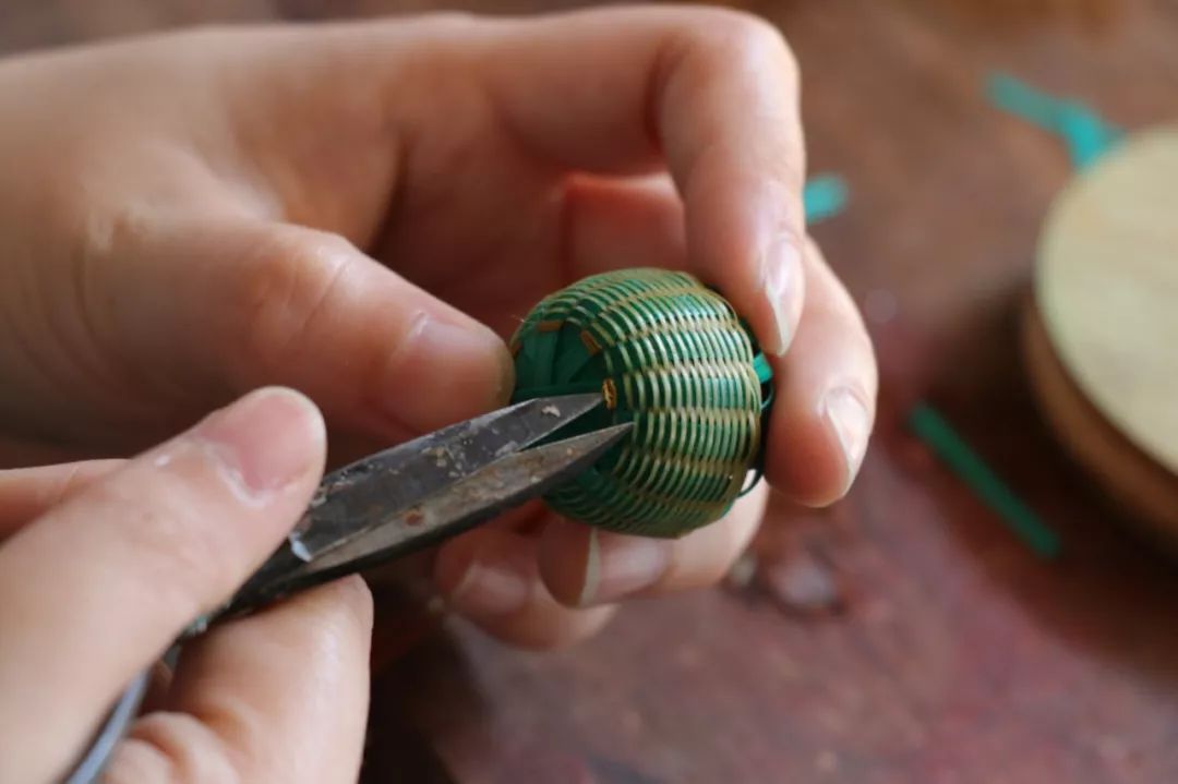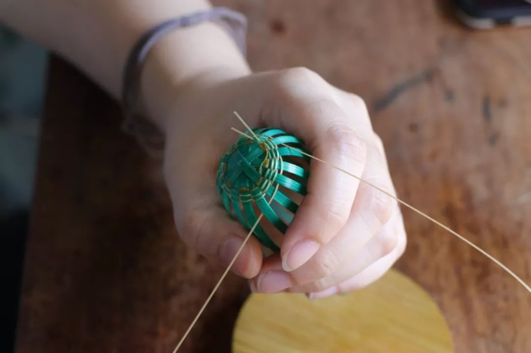 5、在老师的指导下,现场体验竹编铃铛手工制作