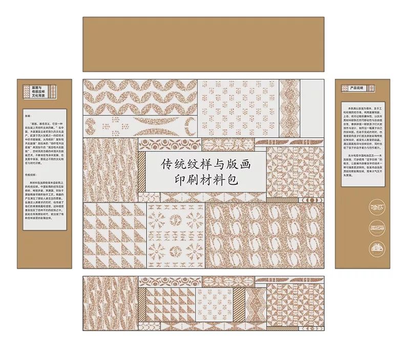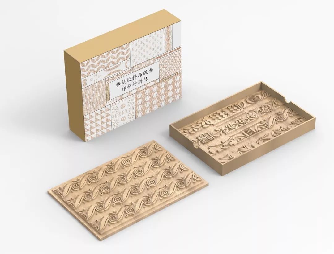 【材 料】材料包:油墨颜料、纹样印版、滚轮、调色板、宣纸、木蘑菇印刷拓