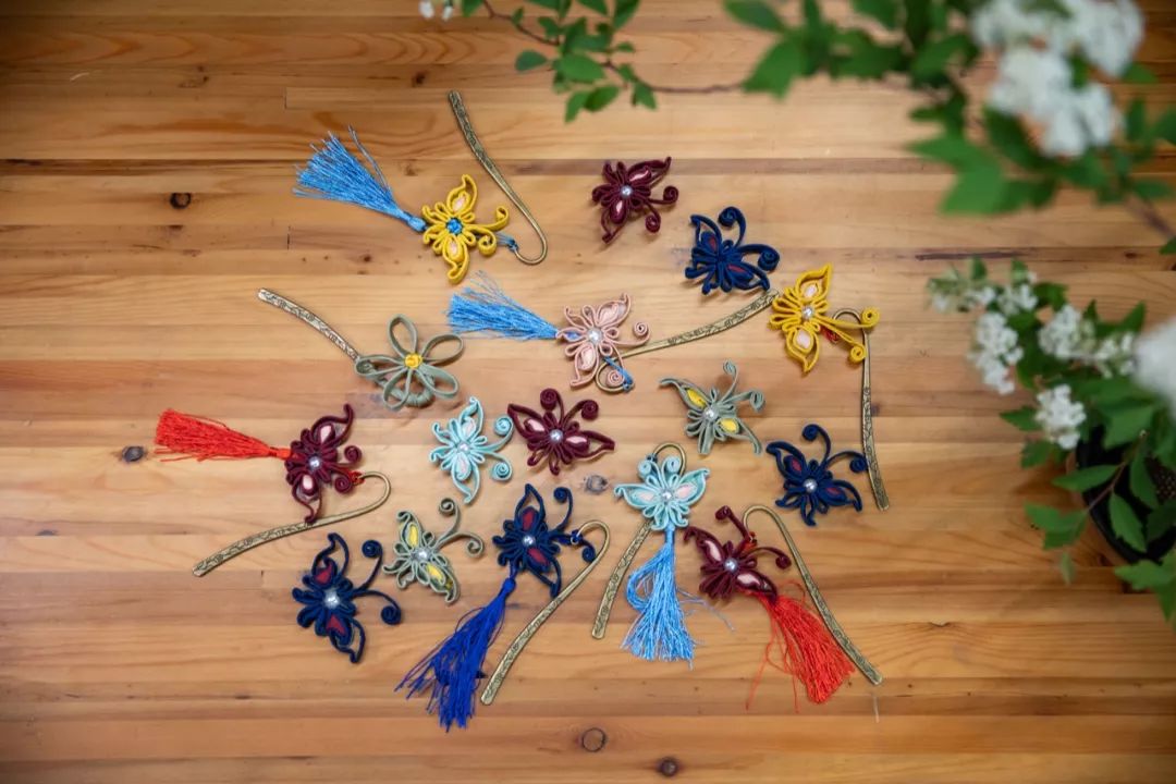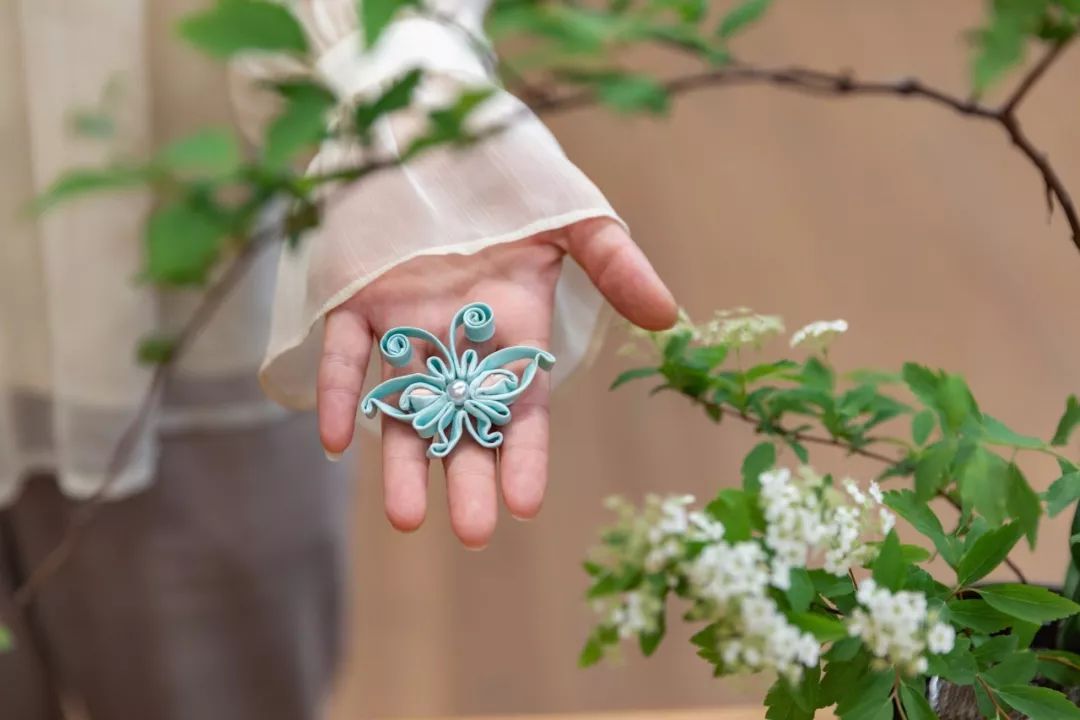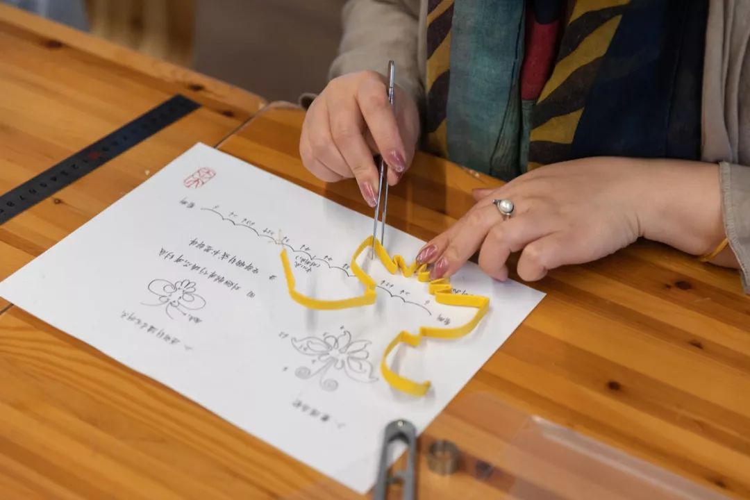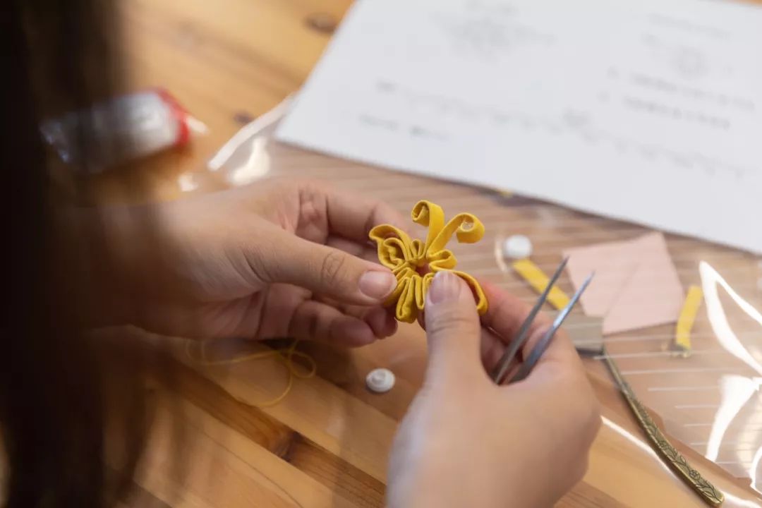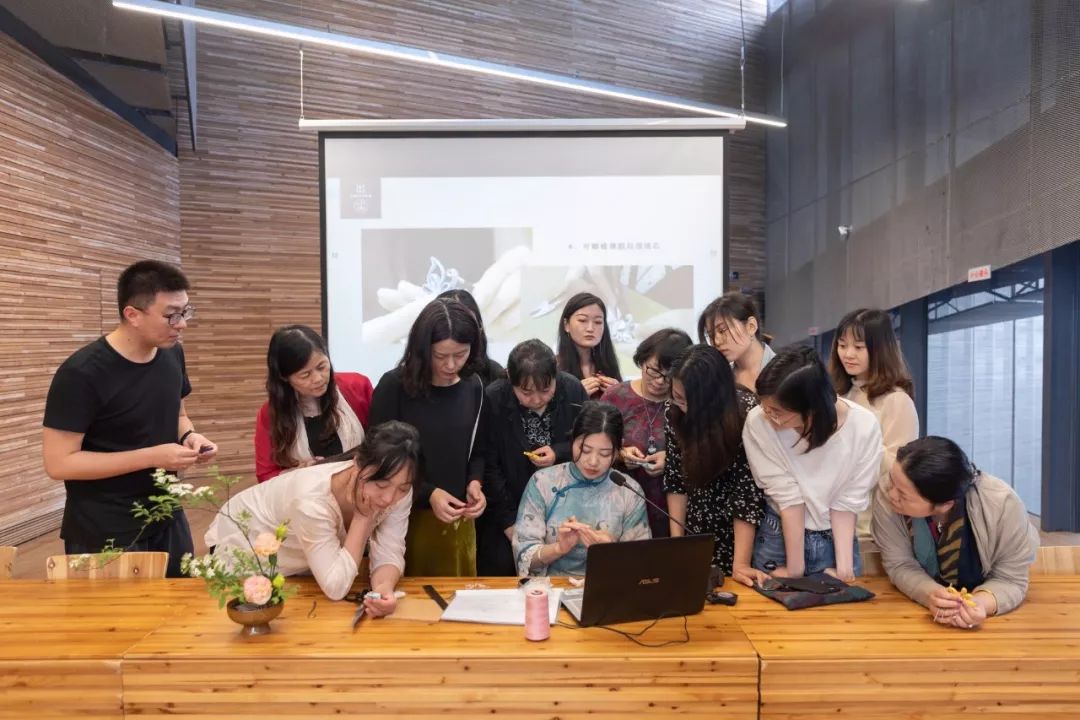 在老师的耐心指导下,学员们根据图纸小心翼翼的用镊子将硬扣条弯折定型,用顶针将针头顶入,把每一个转折点细细缝合。栩栩如生的蝴蝶造型就这样从无到有,跃然于手心之上。时间也从这一针一线中缓缓流逝,到了课程结束时学员们也舍不得离开。