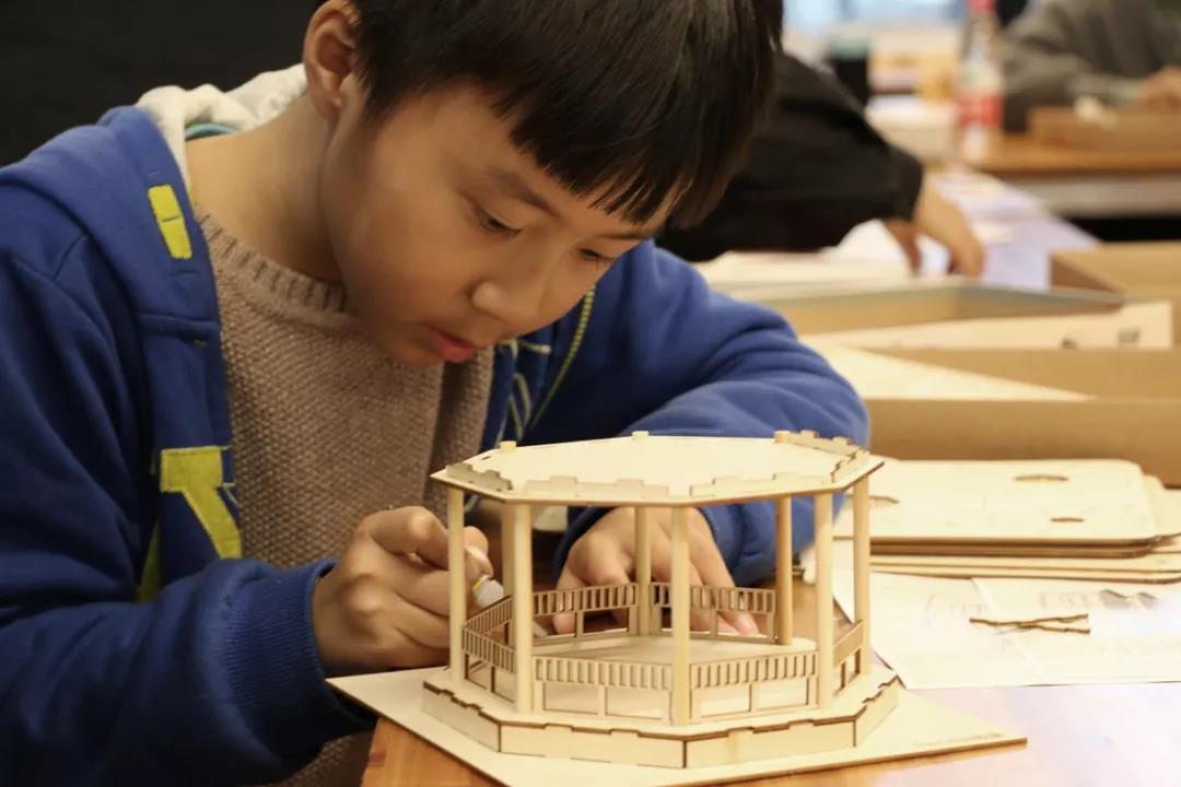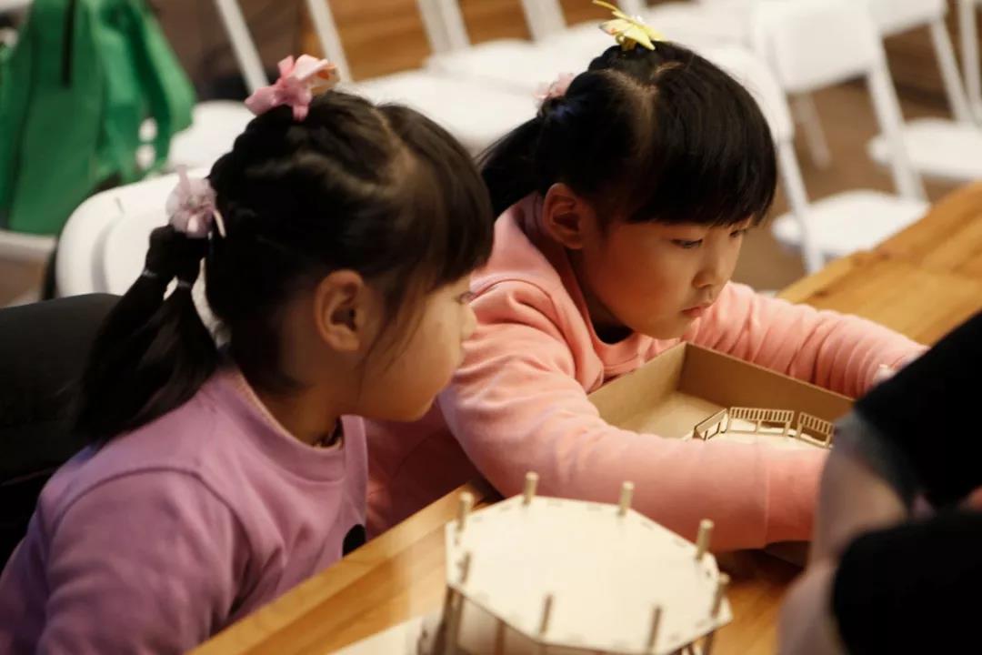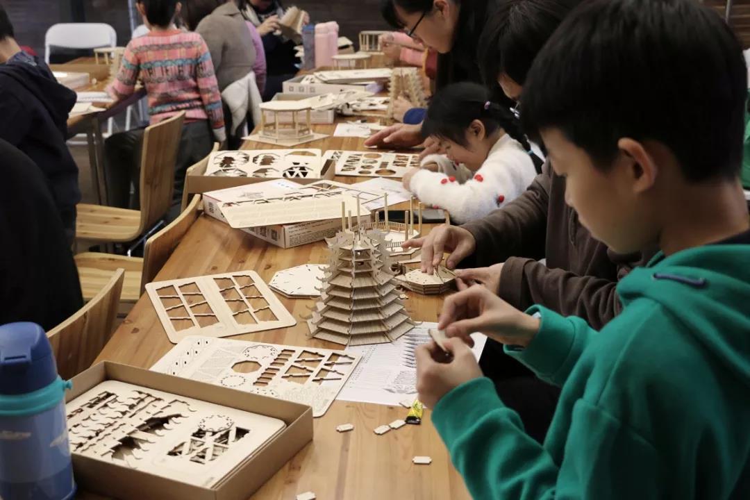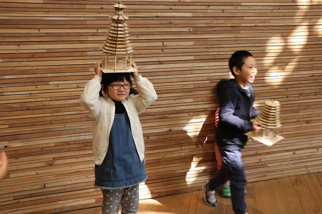 12月1日,在民艺博物馆的多功能报告厅,第二期民艺儿童工坊“传统建筑.侗族鼓楼制作之体验”课程圆满结束。本课程以“侗族鼓楼”作为原型,在形式上进行了创新。以杉木作为原材料,通过精雕方式进行预制件定制,采用凿榫衔接的连接方式。孩子们 通过拼装这些预制件,搭建一个预设的鼓楼模型。难度稍大的鼓楼建筑拼搭在家长和小朋友们的通力合作下,有了很棒的完成品。