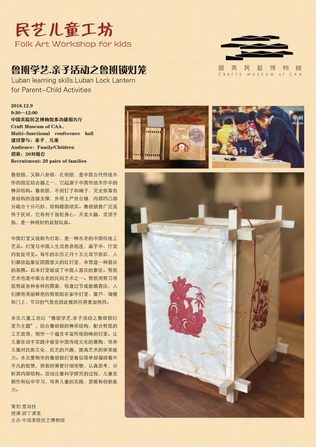 12月9日,第三期民艺儿童工坊“鲁班学艺.亲子活动之鲁班锁灯笼”在民艺博物馆多功能报告厅如期开课。被厚厚的白雪包裹着的民艺博物馆呈现出与往日不同的美景,天气的寒冷并没有挡住小朋友们前来动手创作的热情。