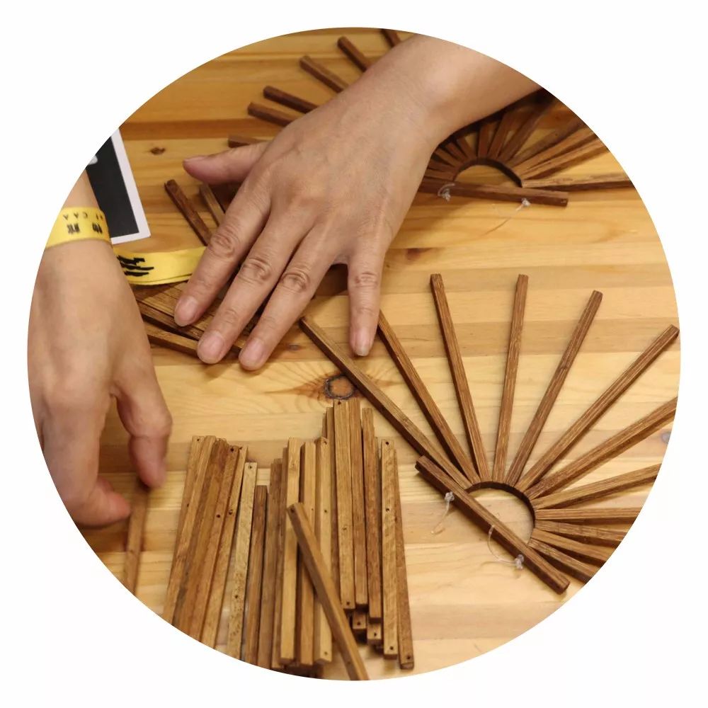 竹编老师现场教学制作竹手环