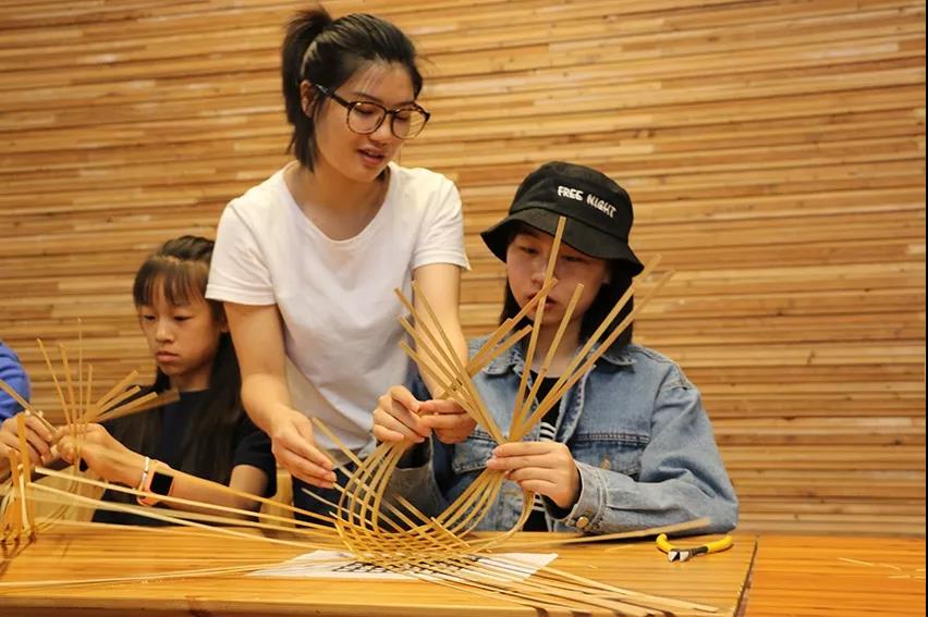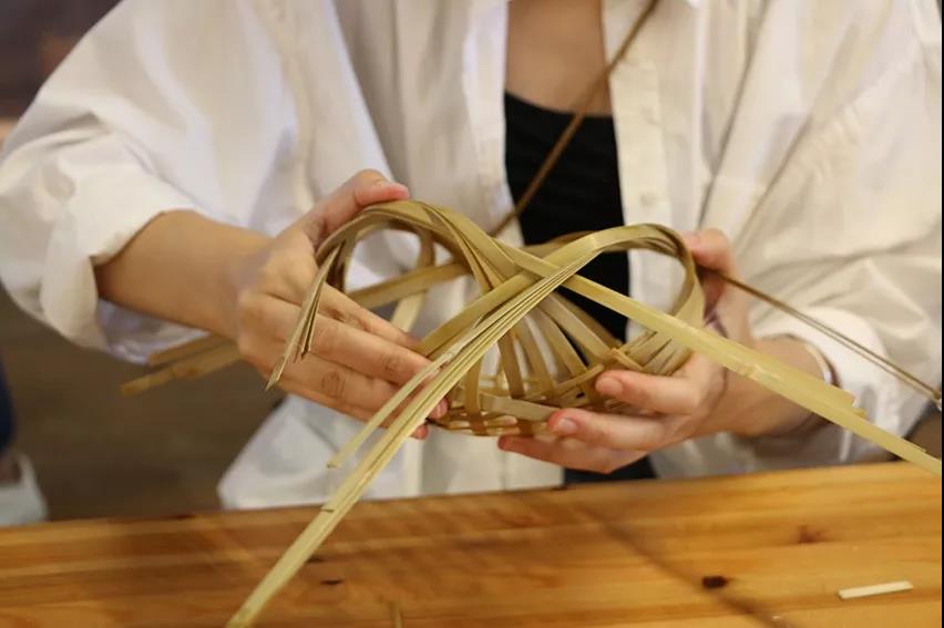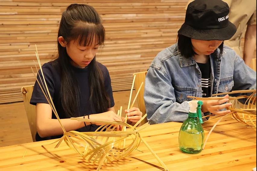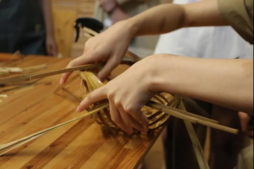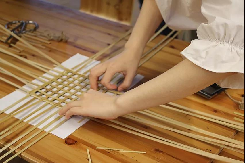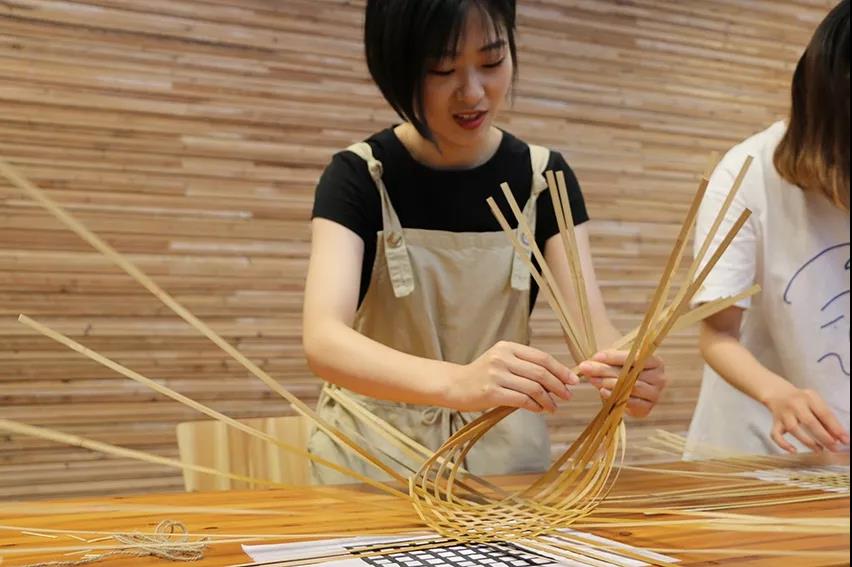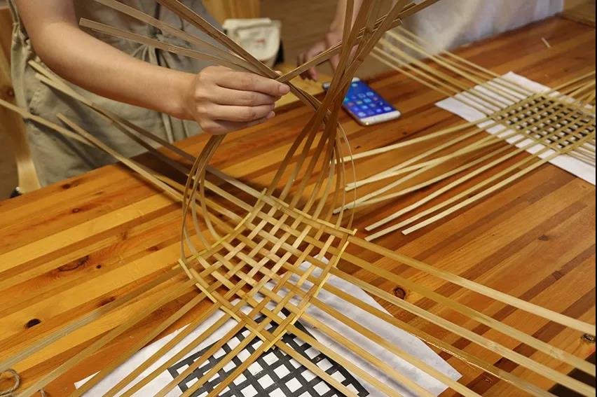 本次民艺工坊“竹够好玩”是一次关于竹编的体验课程。传统竹编工艺在我国有着悠久的历史,富含中华民族劳动人民辛勤劳作的结晶,已列入国家级非物质文化遗产名录。竹编是指竹篾片的挑压交织,一般称被挑压的篾为“经”,而编织的篾为“纬”。由经与纬的挑压可以编织出千变万化的图案,从而制作出千姿百态的竹编产品,根据编织工艺的不同,竹编可分为平面竹编、立体竹编和混合竹编。工艺大体可分起底、编织、锁口三道工序,在经纬编织的基础上,还可以穿插各种技法。