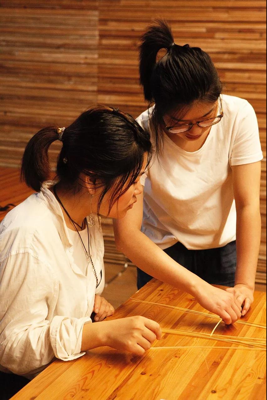 本次工坊我们特别邀请了【令竹】品牌工作室的工艺师们来传授工艺技法。课程分为两个部分,第一部分:课程老师通过PPT讲解的方式讲解了竹编工艺、竹编的跨界应用案例、竹编基本技法、竹材的选择、材料前期准备及“竹编.四海波”的制作步骤。第二部分:在老师们的指导下完成手工课程作品“竹编.四海波”。学员们很投入的参与了本次课程,这是一场从手到心的民艺体验,领公众亲手操作,感受中国传统竹编工艺的魅力。