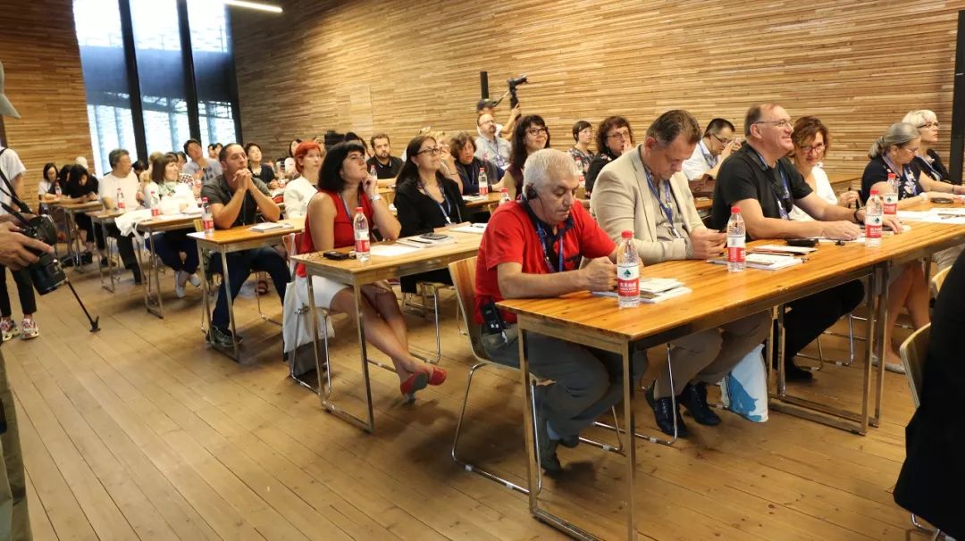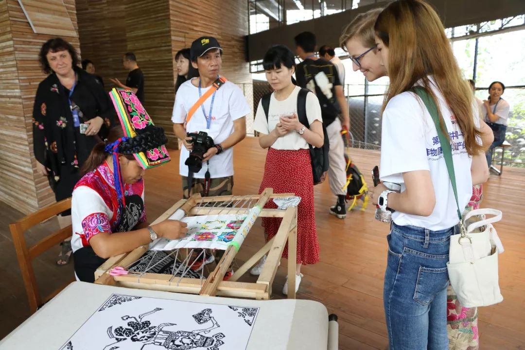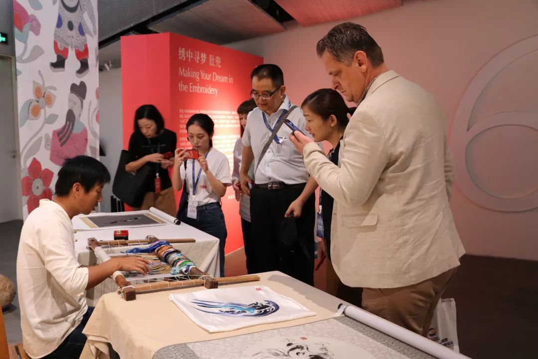 9月21日上午,由中华人民共和国文化和旅游部外联局、浙江省文化厅主办的“「大匠至心·手创造的文化记忆」第二届中国——中东欧国家非物质文化遗产保护专家级论坛”的专家代表来到分会场之一的中国美院民艺博物馆。专家代表们参观了《民艺中国——女红系列展》,并在民艺博物馆的多功能报告厅进行议题研讨。