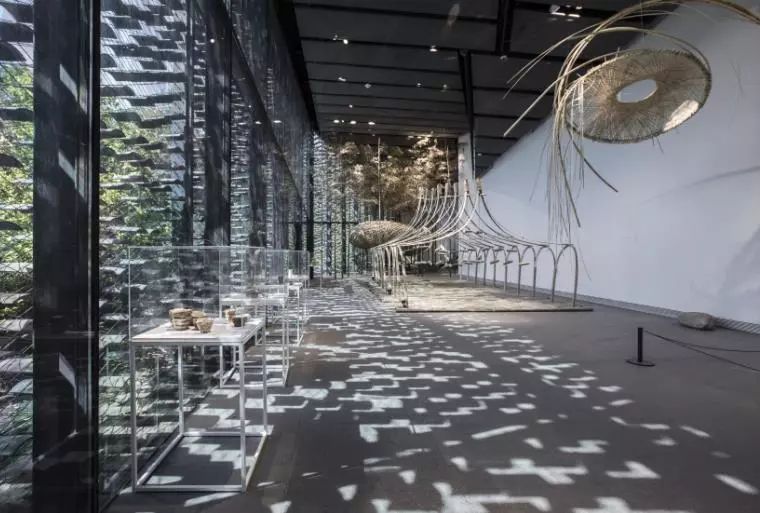 民艺博物馆建筑由日本著名建筑设计师隈研吾(Kengo Kuma)设计。整个博物馆形态呈菱形,单层坡顶,随丘陵「之」字形俯伏,与倾斜的地形相结合,是与自然共存的有机建筑,体现了设计师“让建筑自然消失”的理念。